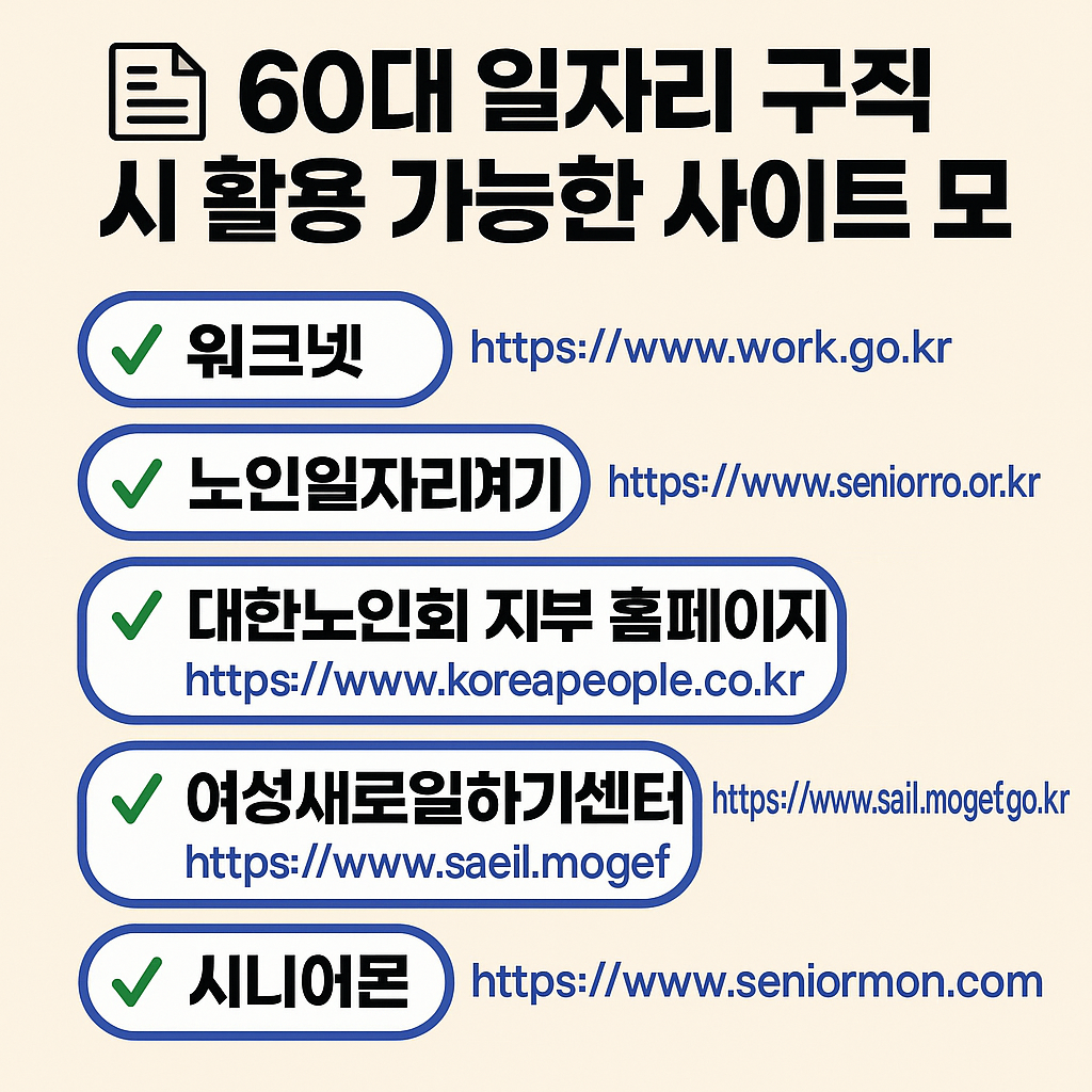 📌 구직 시에는 중장년 전문 취업사이트(교차로, 시니어몬, 워크넷) 활용이 중요합니다.